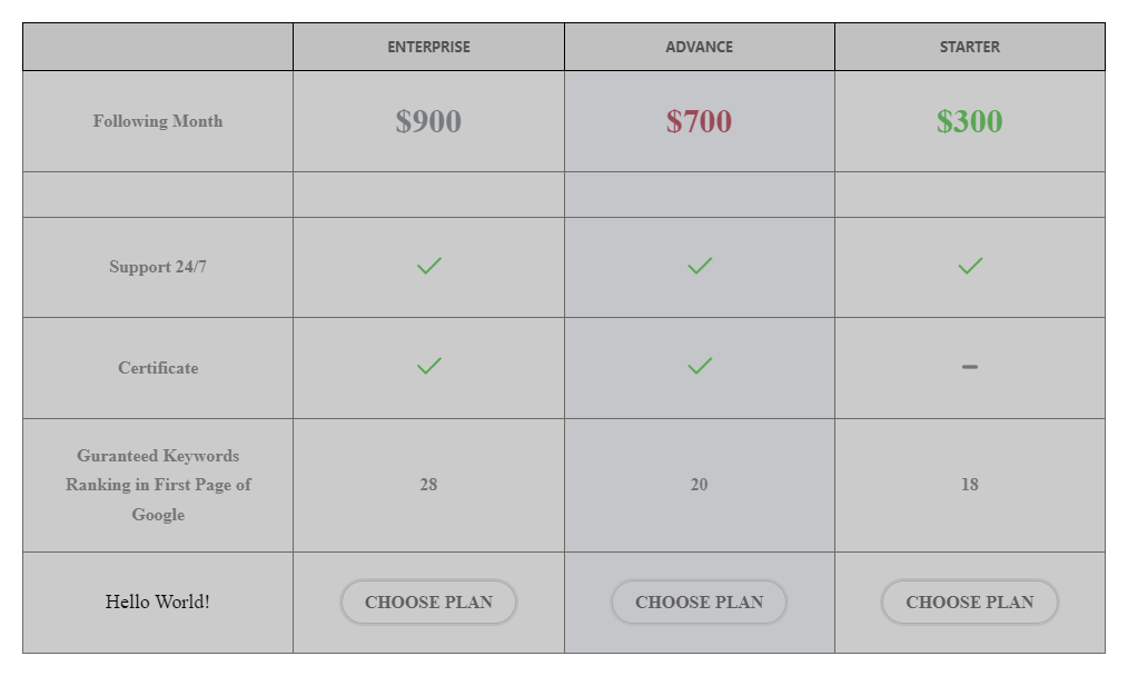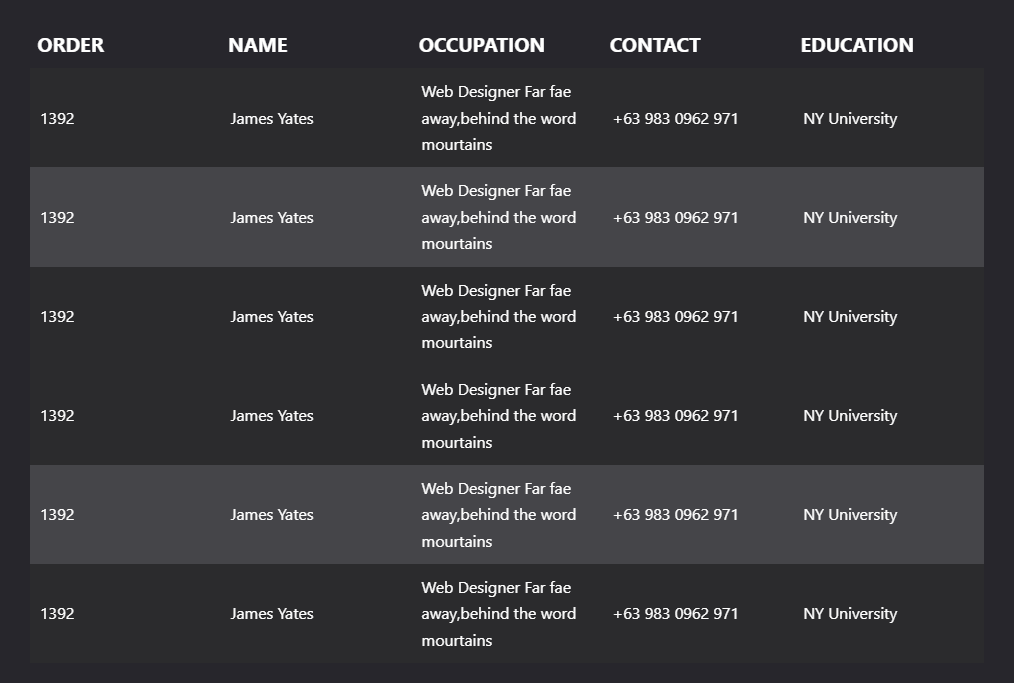 Table – Row Style